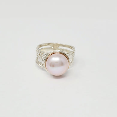 Size 7 Sterling Silver Textured Ring with a 10mm Lavender Button Pearl