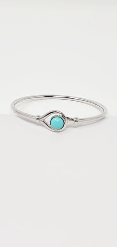 Sterling Silver flex Bangle Bracelet with 8mm Turquoise Cabochon