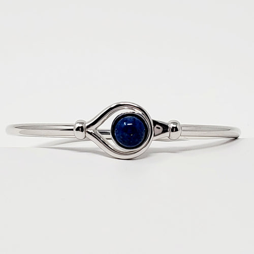Sterling Silver flex Bangle Bracelet with 8mm Lab-Created Blue Sapphire Cabochon