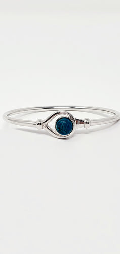 Sterling Silver flex Bangle Bracelet with 8mm Chrysolla Cabochon