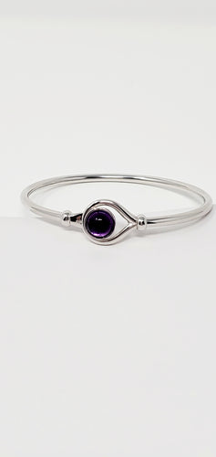 Sterling Silver flex Bangle Bracelet with 8mm Amethyst Cabochon