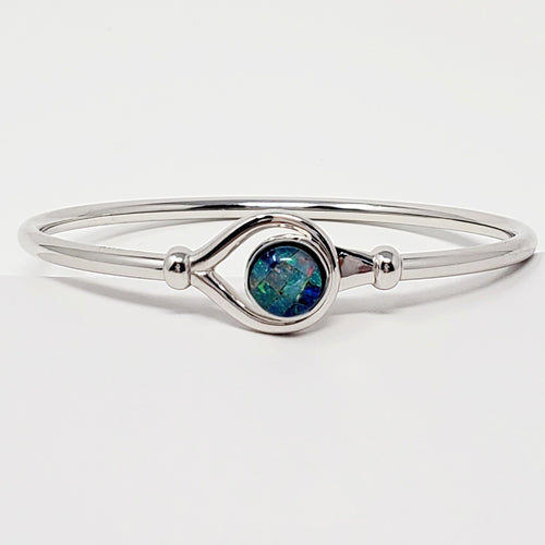Sterling Silver Flex Bangle Bracelet with 8mm Opal Mosaic Triplet Cabochon