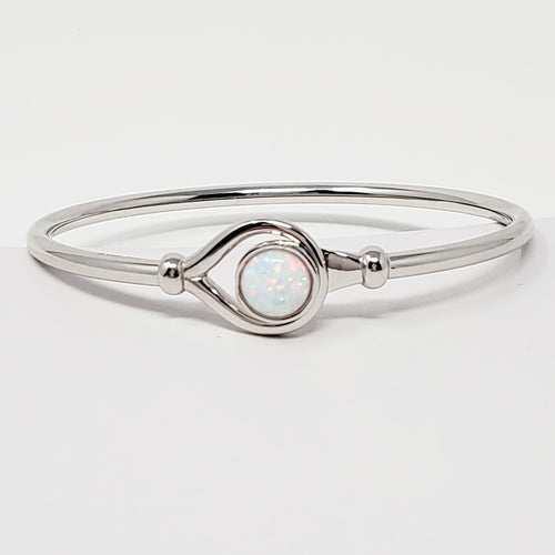 Sterling Silver flex Bangle Bracelet with 8mm Kyocera Opal Cabochon