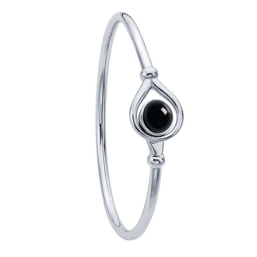 Sterling Silver flex Bangle Bracelet with Black Onyx Cabochon