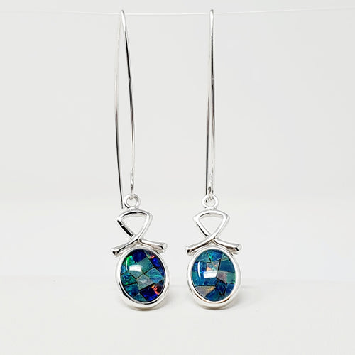 10 x 8 Mosaic Opal Triplet Oval Cabochon Earrings mounted on a Sterling Silver Component made with an oversized Argentium Silver Ear Wire