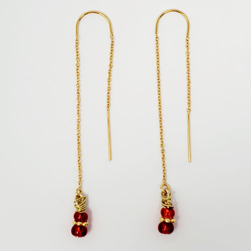 14k Gold-Filled U-Bar Threader Earrings with 2 Red Beads