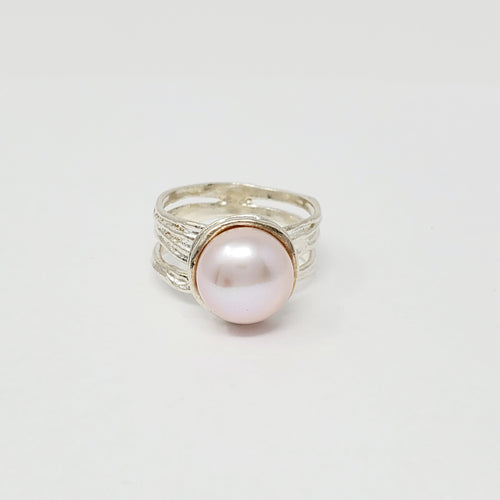 Size 7 Sterling Silver Textured Ring with a 10mm Lavender Button Pearl