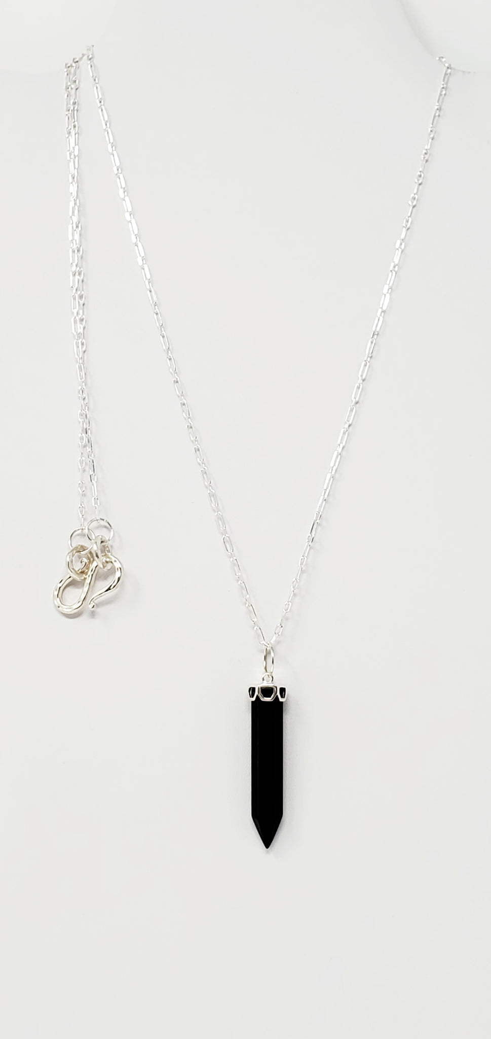 29" Sterling Silver Long & Short Chain with a 2" Black Onyx Crystal and a Beautiful Clasp