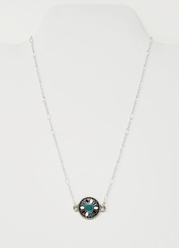 16" Maroon, Turquoise and White Flower Argentium Silver Necklace