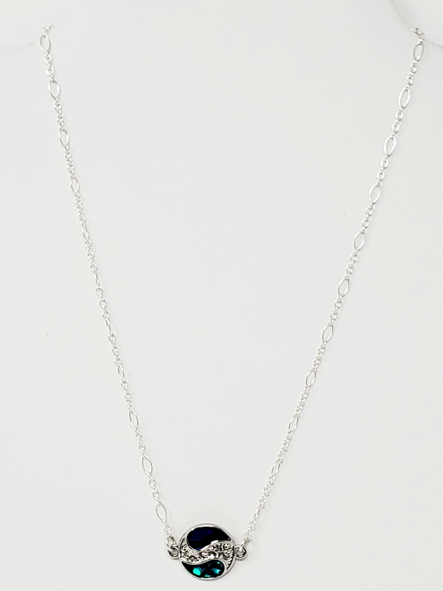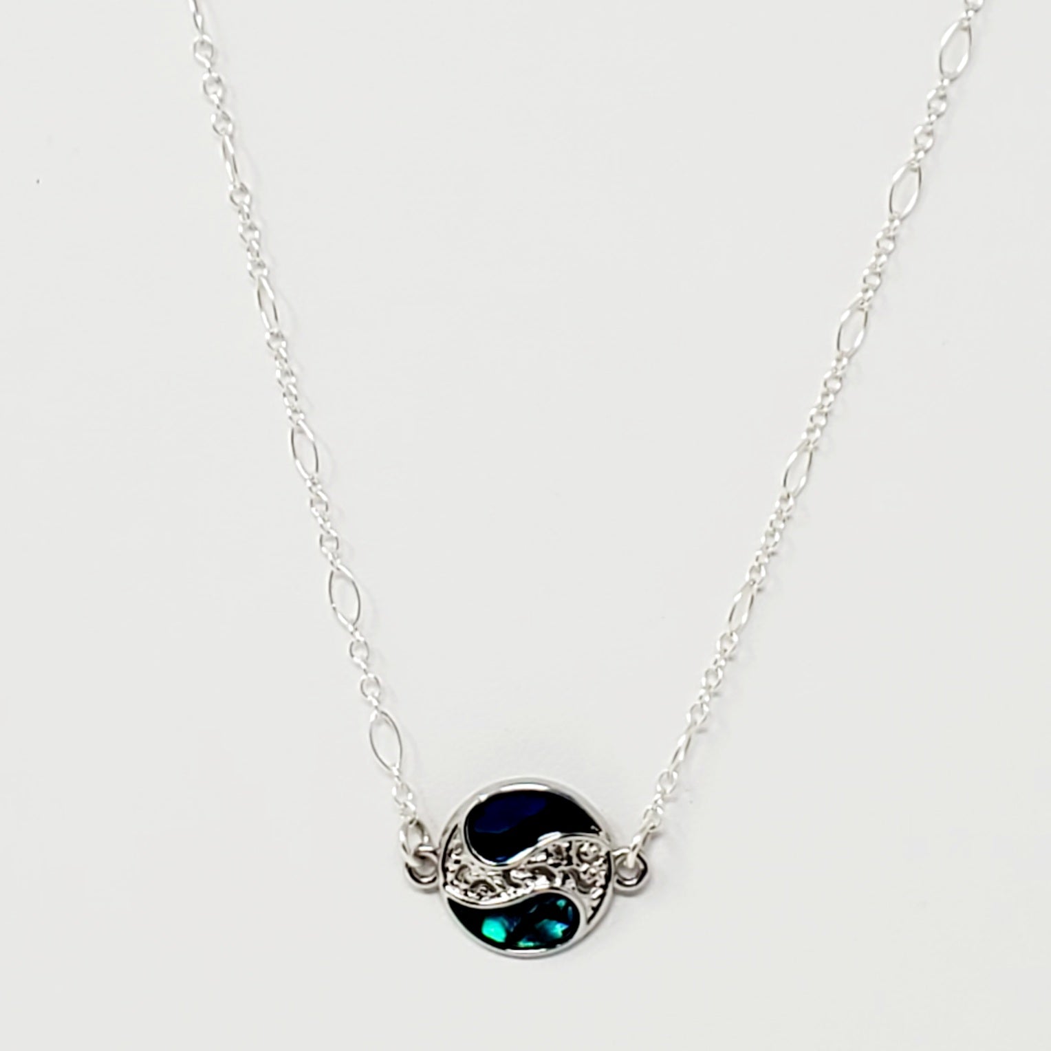 16 " Blue & Green Yin Yang Argentium Silver Necklace